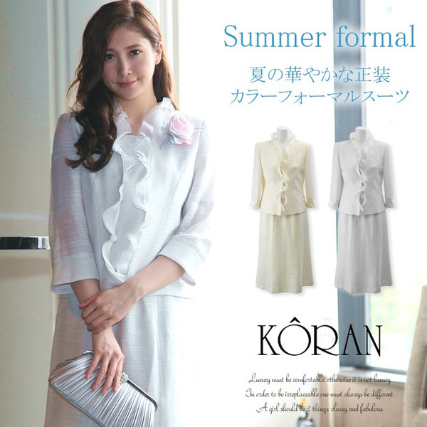JUGEMテーマ:パーティ 上品で爽やかな夏のフォーマルスーツです。 色:アイボリー/ライトグレー サイズ:9・11・13号 価格:26,784円 高級感をまとったスラブ生地のフォーマルスーツ 衿から身頃まではエレガントなオーガンジーを使い立体感をもたせ、 お顔まわりを優しい表情を持たせます 胸元にはラインストーンをあしらった胸当て付きなので、 インナーに悩む心配はいりません。 スカートは少し長めのセミフレアスカート。 足をスッキリ見せ、美しいドレープを描きます 結...