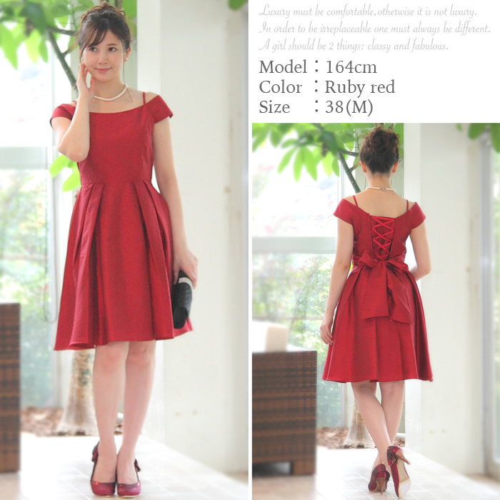 JUGEMテーマ:パーティ 女の子の憧れをぎゅっと集めた正統派大人スタイル 色:ルビーレッド/エメラルドグリーン/サファイアネイビー サイズ:M 価格:12,800円 デコルテを美しく見せるオフショルダーでぐっと大人っぽい ロマンチックエレガンスなドレスアップ レースアップのバックスタイルにふっくらしたウエストのリボン 女の子の憧れをぎゅっと集めた大人レディスタイル 甘さ控えめの光沢感があるシャンブレーシャンタンは 高貴な深みのあるルビーレッド、光を味方にするエメラル...