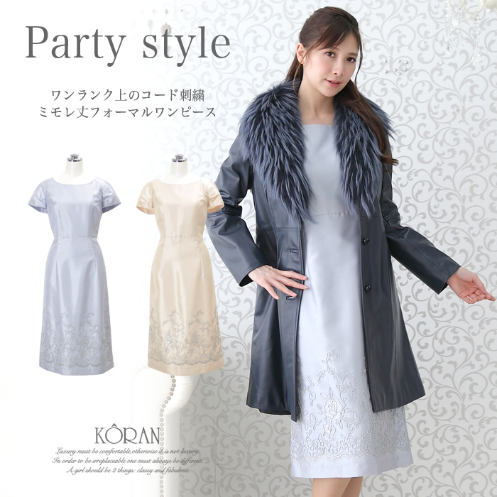 JUGEMテーマ:パーティ 華やかなお呼ばれの席にはワンランク上の上質ワンピースドレスで 色:シルバー/シャンパン サイズ:M 同窓会などの華やぐお呼ばれの席を美しく飾る30代におすすめのフォーマルワンピース 明るいシルバーとシャンパンは顔まわり華やか また着丈が長く、膝が隠れる丈で清楚にエレガンスに見えるデザイン 微光沢感のあるシャンタン生地とラメ糸のコード刺繍は高級感あふれるフォーマルワンピースです