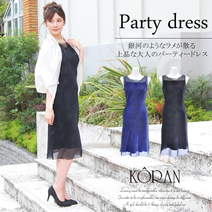 JUGEMテーマ:パーティ ワンランク上の女性への上品な大人のパーティードレスです。 色:ネイビー/ブラック サイズ:9・11・13・15号 夜空に輝く銀河をイメージした品のある細やかなラメを散りばめたパーティードレス 無駄のない洗練されたフォルムから格調高い大人の女性らしさを引き出します 結婚式や披露宴はもちろん、セレモニーにもお召し頂けるワンランク上のフォーマルドレスです ドレスにオススメのパーティーボレロです。