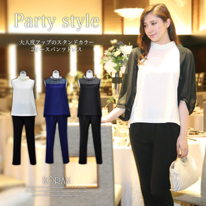 JUGEMテーマ:パーティ ☆ラグジュアリー感&程好い透け感で大人の女性の魅力を http://item.rakuten.co.jp/koran/ko12-fc-a189/ 色:ホワイト/ネイビー/ブラック サイズ:M 価格:14,800円 ハイネックにパールを施した高級感あふれるパンツドレスは アクセ要らずで顔周りをリッチに彩り デコルテはシフォン生地をあしらい、程よい透け感が女性らしい雰囲気 ブラウスの裾は直線的でシャープ+スリムな印象に パンツはセンタープレスで縦のラインが強調し脚長効果がうまれ ...