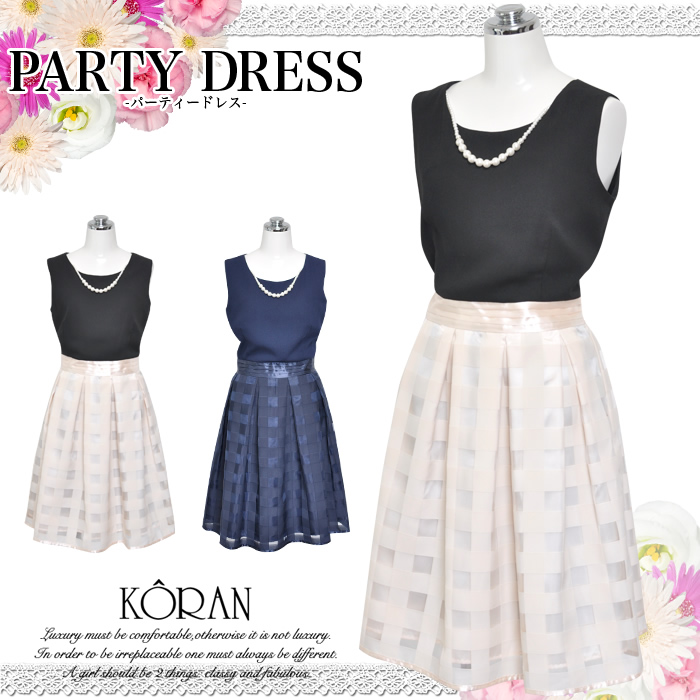 JUGEMテーマ:パーティ ☆ふんわり広がるスカートで大人可愛く。 http://item.rakuten.co.jp/koran/ko7-ce-a161/ 色:ベージュ/ネイビー 結婚式・披露宴なパーティーシーンや発表会にオススメのフォーマルドレス ウエストマークのサテン部分が高級感を引き立て ふんわり広がる透かしチェックのスカートは同色で派手すぎず 軽やかで大人かわいいアクセント♪ パールのネックレスが付属でついており、取り外し可能 ジャケットなどを合わせデイ...