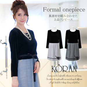 JUGEM 秋冬のちょっとしたお呼ばれにオススメの上品ワンピースです テーマ:パーティ 色:グレ−/チャコール サイズ:9・11・13号 秋冬のちょっとしたお出かけにオススメの長袖ワンピース ベロア素材の上身頃に、ボトム部分はツイードの異素材の組み合わせがお洒落なスタイル 肩のミニパフスリーブや裾のグログラン刺繍など細かい部分に可愛らしさをプラスしました ちょっぴりお洒落にきめたいシーンなどに是非オススメの一枚です
