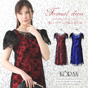 JUGEMテーマ:結婚式 JUGEMテーマ:パーティ サテン×チュールの綺麗なレイヤードスタイル♪大人のお呼ばれシーンにオススメのアイテム 繊細で華やかなフォーマルスタイル ディナーパーティーやフォーマルシーンに大人のムードが漂う上品なパーティードレス シルキーな光沢感を持つサテンに重なるチュールフロッキーが好印象 気になる肩を隠せるチューリップスリーブや生地をバイヤスに使い着心地も快適 鮮やかなレッドとブルーの2色からお選びいただけます