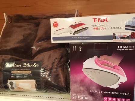 こんばんは店長です さぁ、いよいよ明日から開催しますよっ! 薬屋ふくべ周年祭です☆ そんなわけで今日は各種景品をどど〜んとご紹介! ティファール 2in1 スチームアンドプレスにコードレススチームアイロン 極上の肌触りはプレミアム2枚合わせブランケット! 貴重なクロレラ育ちのお米は5キロ入り!みんなでわいわいホットプレート! 電気しき毛布、電気ケトル、コーヒーメーカーもあります! 電気...