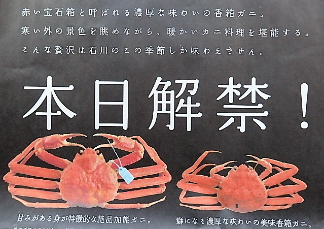 JUGEMテーマ:日々を楽しく いよいよ冬の味覚の代表、11月6日カニが解禁された。市場に出回るのは7日からということになる。熱燗でいっぱいというのはこたえられない。 過程で普通に食べるのは、メスの香箱ガニ。小ぶりだがいろんなうまみが詰まっている。さばき方と、それに食べ方も少し難しいので慣れた人でないとうまく食べられないかもしれない。 オスのズワイガニの豪快な1パイは格別で、足をぽきんと手で折って口に入れるのは何とも言えない。また面に熱燗を注い...