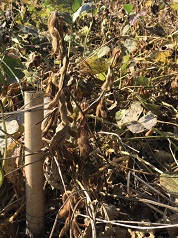 って、今年お百姓さんになるまで知らなかったー(汗) 畑で枯れ果てた枝豆ちゃん。 おー、今が収穫しどきですねー。 こぼれたのを、ぽちっとむしってみたら・・ コロンと出てきたー。 収獲したものを束ねて、軒下に干す。 少しまだ青い部分もありますね。 2週間ほど、このまま放置しておけば問題ないそう。 で・・その後、下に敷いたブルーシートの上に乾燥豆を叩き落し・・ んー、その後の作業、めっちゃ大変そう・...
