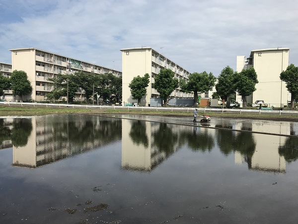 田んぼに水が入りました。 今年も「水に浮かぶ団地」を撮ろう。 なんでも、こういった、実際の世界が水面に写りこみ、まるで反転したように撮った写真を 「リフレクション」というそうで…。 団地のすぐ手前の田んぼにはまだ水が入らず… 一番遠いところから撮影しましたが… やっぱり、手前に水が入らないと、迫力の絵が撮れないね…。 ちなみに… これは去年(2020年)のもの。 曇天だが、なかなか迫力のある写真と自負する。...