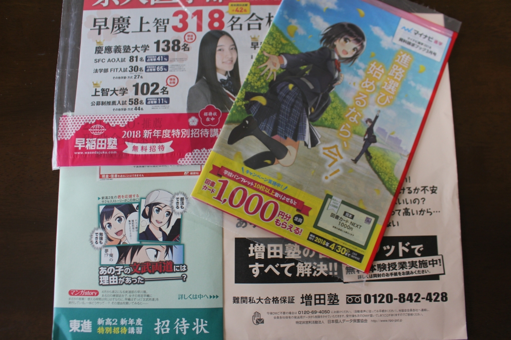 JUGEMテーマ:グリーフケア 家電はセールスの電話が多いし、電話で話すのも嫌な事も多くなり、非通知は もちろん、電話番号を見て出ない事が多くなりました。 先日、この番号は・・と思い、出てしまったら 家庭教師か予備校のセールスの電話だった。 高校生のいる家庭にかけています。と・・ 「いませんよ」と答えて、失礼しました。と切れました。 DMも沢山きています。 &nbs...