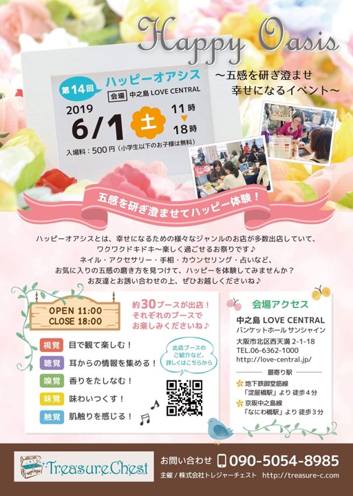 久しぶりにイベント出店します。 第14回「ハッピーオアシス」 〜五感を研ぎ澄ませ、幸せになるためのイベ〜ト〜 懐かしいイベントです、第一回と第二回には出店させていただきました。 そのころ、活動の幅をどうしても狭めざるを得ない状況で それでもありがたいことに声を掛けていただき、おかげで活動を止めることなく続けられた。 この当時のイベント出店は私にとって大きな意味を持つものでした。 特に「ハッピーオアシス」は私の気持ちにも弾みをつけてくれる素敵なイベントでした。 ...