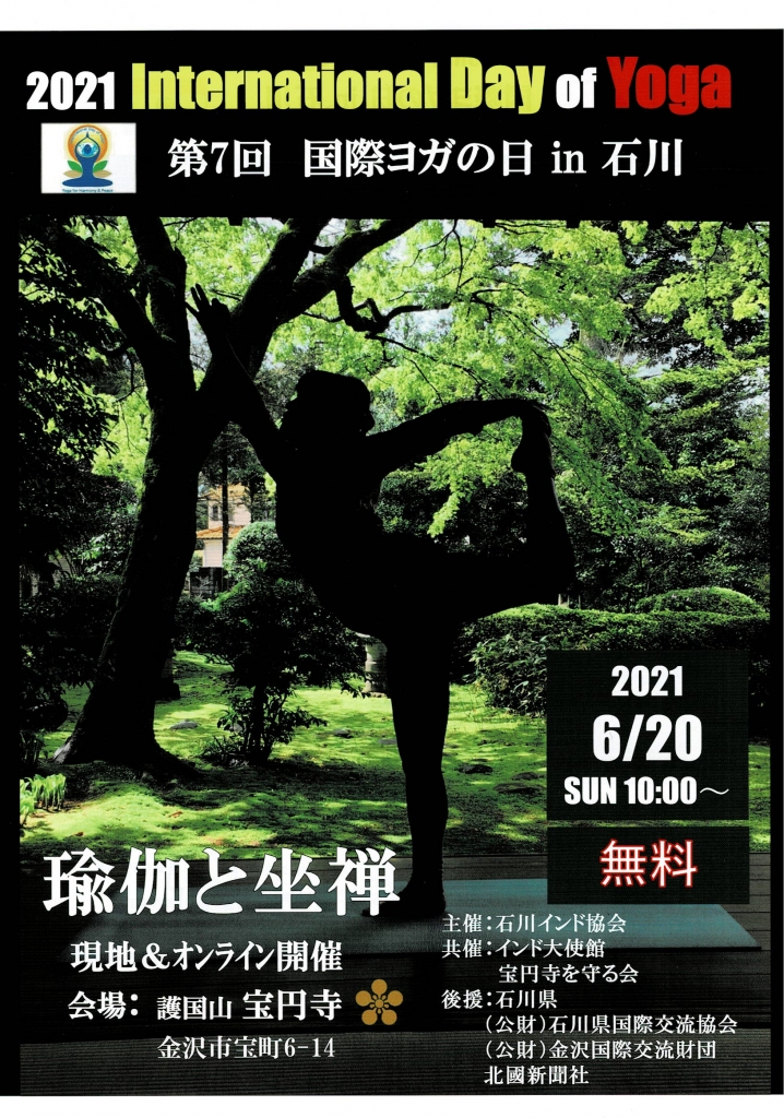 JUGEMテーマ:イベント情報 喩伽と座禅 現地&オンライン開催 会場 護国山宝円寺(金沢市宝町) 日時 6月20日 午前10時から 参加費無料 主催 石川インド協会 https://www.facebook.com/ishikawaindia/