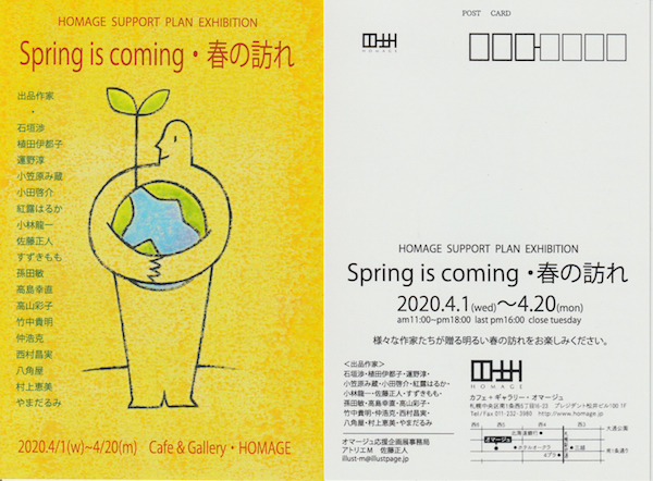 JUGEMテーマ:イベント情報 志村けんさんが新型コロナウイルス感染で亡くなったと言う訃報を聞き、 まだ更なる感染拡大が心配な状況下ではあるが、コロナに負けないように との思いも込めて、これから来る春をテーマにした企画展を開催します。 ********************************* オマージュ応援企画展 「 Spring is coming ー春の訪れー 」 ■ 会期 : 2020年4月1日(水)〜4月20日(...