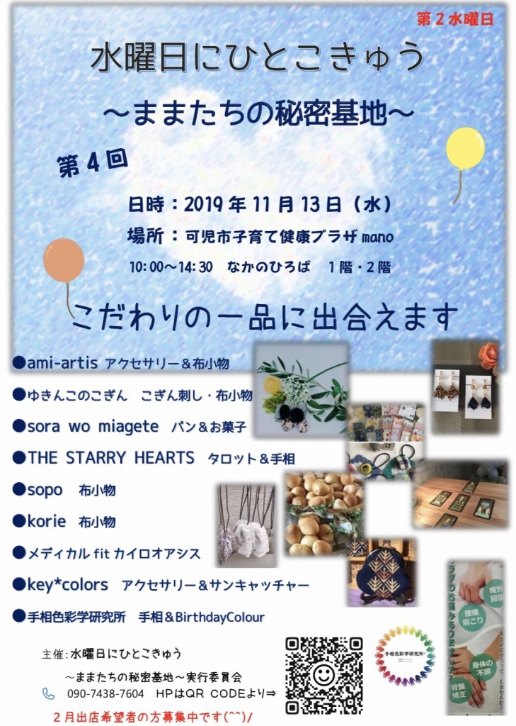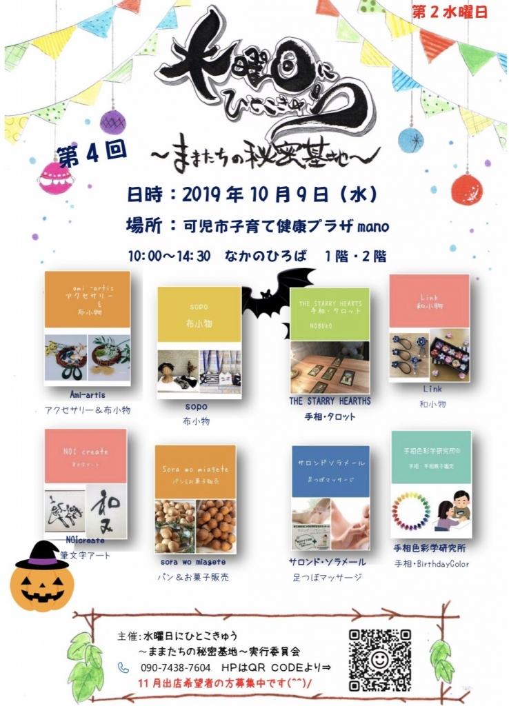JUGEMテーマ:イベント情報 手相色彩学研究所®は、ブログランキングに参加しています。 ↓最初にアイコンクリックお願いします。↓ ↓↓↓↓↓↓↓↓↓↓↓↓↓↓↓ 一日一回、クリックして頂けると、励みになります 宜しくお願い致します。 手相の専門家の日比野かずほです。 今日は、イベントのお知らせです。 「水曜日にひとこきゅう〜ままたち...