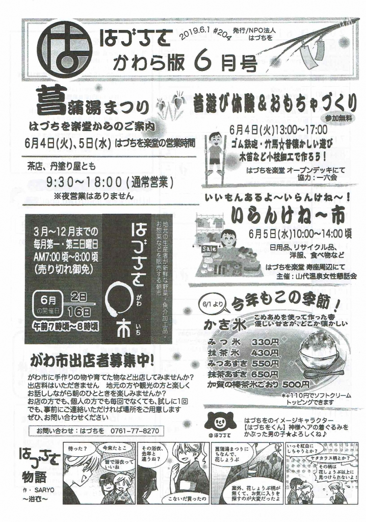JUGEMテーマ:イベント情報 6月4日 昔遊び体験とおもちゃづくり 6月5日 いらんけね一市 6月4日・5日 9時半から18時営業 はづちを楽堂 http://www.hadutiwo.com/ おだししている 加賀パフェ もぜひチェック
