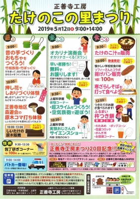 JUGEMテーマ:イベント情報 ご来店くださったお客さま、 中央病院の売店でお求め下さったお客さま、 ありがとうございました。 5月12日(日)に正善寺工房で「たけのこの里まつり」が開催されます。 ソフィーのコッペパンを使って、懐かしい揚げパンの販売もあります。 他にも楽しいイベントや、美味しい食べ物の販売がありますので、 どうぞご家族でお出かけになってみてはいかがでしょうか。