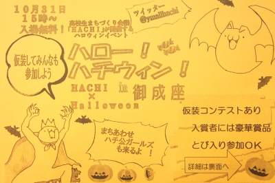 10/31(土)は、ハロウィンですね(*^^*) Peek a Booでは、10/31(土)ご来店のお客様全員にお菓子を用意しております。 是非この機会にお子様を連れてお越し下さい☆ その他に、同日15時より映画館「御成座」にて高校生が開催するハロウィンイベントがあります。 大館のご当地アイドル「まちあわせハチ公ガールズ」が来たり、仮装コンテストがあったり、スタンプラリーがあったりと楽しい時間を過ごせそうなイベントです! 当店も高校生が作ってくれた飾りで、ハロウィン風になっています☆ 皆様のお越しを心よりお待ちし...