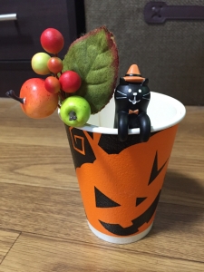 JUGEMテーマ:今日の日記 JUGEMテーマ:写真日記 JUGEMテーマ:HALLOWEEN★ ここ数年で一気に一大イベントになったハロウィン 小さい頃に無かったイベントなので、正直言うと 未だに抵抗があるというか、他人事イベント・・・みたいな 気持ちだったりするんですが ローソンの街カフェのカップがハロウィン仕様になっていて かわいかったので、家でハロウィンの飾りにしてみようと 突然思い立ち、実行 じゃじゃん。 自分で言うのもなんですが、意外とかわいくないか カップに入れた猫ちゃんと果物&葉っ...