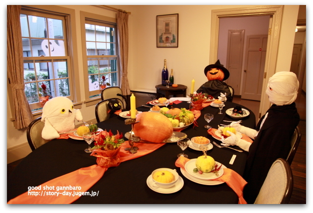 JUGEMテーマ:HALLOWEEN★今日、3つ目の記事は山手234番館のハロウィン装飾の写真です。ここまで巡って来た館では(ブラフ18番館~ベーリックホール~エリスマン邸)、コンサートや結婚式が行われていて正直なんか落ち着かない感じでしたが、山手234番館に入ってやっとゆっくり撮れた感じでしたテーブルには先客(?)がいらして、なんだか賑やかでしたけれど・・・ テーマは、正に「ようこそカボチャパーティーへ」。ちょっとリアルな雰囲気に写って怖いな・・・^_^;きちんとご招待席もございましたよ。 ご訪問ありがとうござい...