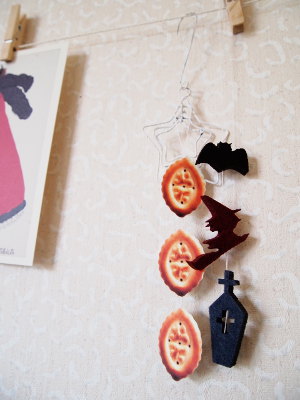 JUGEMテーマ:HALLOWEEN★ 新瀬です。寒いです(((´Д`))) 生姜レモン紅茶を飲んで温まりましょう…さぶさぶっ。 もうすぐハロウィンなので、部屋もちょこーっとだけ飾り付けしました! このオーナメントだけっていう(笑) ハロウィンは好きだけど、ガッツリ飾りを買うと来年までの保管が(;´Д`) 小さく収まるものにしてみました。 蝙蝠・魔女・お墓のオーナメントは、ナチュラルキッチンで。 厚いフェルト製で、白い糸で繋がっています。かわいい。 で、隣のは、例のビスケットです!笑 同じ...