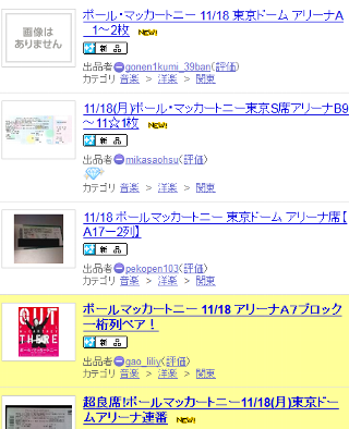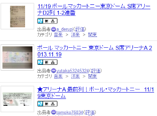 10/29現在の情報です。 ポールマッカートニーの11/19東京ドーム公演。 なんと、まだまだアリーナ席の在庫があるんです♪ どこにあるかと言うと、 あのヤフオクなんですね。 落札とか面倒じゃ・・・?と思われる方もいますが、 今ではヤフオク側のシステムがしっかりしているので、 評価が高い落札者を選べば 安心確実に取引出来るんですね。 取引の文例なんかも用意されているので、 スムーズに進められます♪ ⇒ポールマッカートニー東京ドーム11/19アリーナ席の在庫状況はこちら