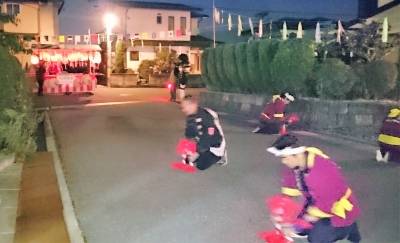 JUGEMテーマ:地元の祭り いよいよ篝火にも火が入ってお祭りが始まります。 昼間とちがって人、人、人です。 太鼓がなって鞍馬の下から神社の方向へ松明が上がっていきます。 大松明は数人がかりで担いでいます。 御旅所に松明が集まりました。 そして、神の神社へ向かって出発します。 今回は、土曜日ですごい観光客みたいでしたが、地元の人の関係でたすきをを つけていると警備の規制も気にすることなく松明について行けてました。 本当に...