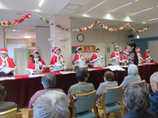 JUGEMテーマ:クリスマス 今日は二つの施設で、佐賀女子高等学校ハンドベルリンガーズのクリスマスコンサートでした! ●老人保健施設ライフエード 現在ライフエードの職員でリンガーズOGの加奈子さんも、演奏に加わりました。 ●佐賀整肢学園オークス