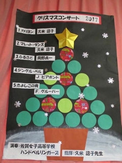 JUGEMテーマ:クリスマス 昨日は牛津ルーテル子ども園(佐賀県小城市)で、佐賀女子高等学校ハンドベルリンガーズのクリスマスコンサートでした。 今年も先生方が素敵なプログラムを作って下さいました! オープニングは私の作曲した「carillon」。 子ども達が手話をしながら「きよしこの夜」を歌ってくれました! 素敵なお花をありがとうございました。 園長先生手作りのクリスマス菓子。 可愛い!