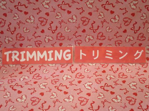 入口ガラス扉に飾る「TRIMMING トリミング」POPのValentine's Dayバージョンを作って見たり ファンシ〜