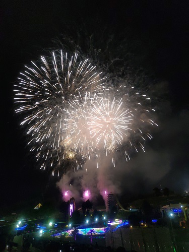 花火大会にいってきました。 グリーンランド(熊本県)で毎年行われているもので、入居者の方より入場が無料になる招待チケットをいただきましたので、入居者数名を誘っていってきました。 入場だけ無料になるのでアトラクションにのるにはチケットが必要、ということで何枚か購入してアトラクションも楽しみました。 さて花火大会ですが30分で8000発もあがるのでなかなか見ごたえがあります。 花火師の人は打ちあがった花火それぞれをイメージして作るのだと思いますが、それと同時にどれとどれを一緒に打ち上げる...