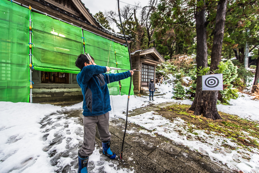 関集落の小正月。 二宮神社の境内に的が用意され、参拝ののち弓矢で的を射ます。 この行事を何と呼ぶのか聞いたことがありませんが、国語辞書を見ると「御弓の神事(おゆみのしんじ)」や「奉射(ぶしゃ)」なんて言葉があるのですね。 子どもの頃は、神社前が集団登校の集合場所で、登校前に的に当てて、用意された菱餅をかじり、 この菱餅がガチガチのボソボソで、美味くないなぁ・・・でも有り難いものだし・・・などと思いつつ、 学校へ向かい歩いたものでした。 浜側にバイパスが通り、外...