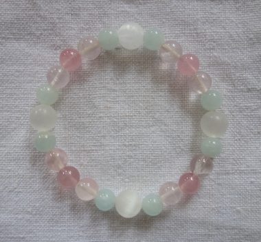 マリア様ヒーリング♡マザーズラブアクアマリアの ブレスレットを作りました。 家にありました天然石で作りました。 ディープローズクォーツ8?玉 スターローズクォーツ8?玉 アクアマリン8?玉 セレナイト10?玉 セレナイトは強い浄化作用、癒しの力を持つとされています。 ローズクォーツは自分自身を肯定し、慈しみ、愛で満たしてくれるそうです。 アクアマリンはすべての生命の源である「海」に、とても深いかかわりを持った石...