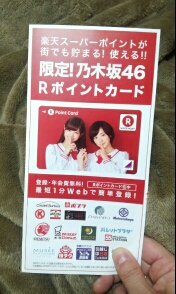 JUGEMテーマ:懸賞、プレゼント いつの間に応募していたんだろう?乃木坂46の Rポイントカードが当選しましたといっても私、特にファンじゃないので誰かこれをもらって喜ぶ人に差し上げたいなとツイッターでつぶやいたら 早速欲しいです!との声がDMで連絡取り すぐにお譲りしました喜んでいただけて 良かったです今年は何があたるかなあ?希望としては 車が当たってしいんですけどね