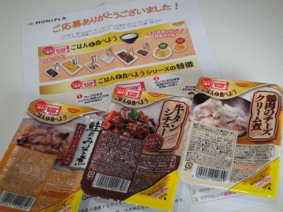 JUGEMテーマ:懸賞、プレゼントモニプラのHOKO食のスマイルショップから 「ごはんと食べよう 楽チン!カップ」 3種類をいただきました〜いただいた3種類は・・・鮭のみそ煮 牛タンシチュー鶏肉のチーズクリーム煮 です。↑ 鮭のみそ煮 鮭は、思っていた以上に多く入っていました1切1切が、小さめにカットされていて、ホロホロと崩れるやわらかさ。お箸でつかみやすいサイズで食べやすかったですまた、食感の違うタケノコとシメジが、いいアクセントになっていました味付けは、濃いめで「ごはんと食べよう」という名前に...
