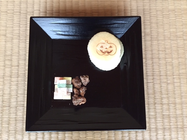 JUGEMテーマ:和菓子が好き JUGEMテーマ:茶道 写真右上のお菓子は、ハロウィンバージョンの麩の焼(ふのやき)。 私「かぼちゃの絵のは、かぼちゃの味がしました!」。 Aさん「葉っぱの絵のは、何かの葉っぱの味でした!」。 Bさん「・・・私が食べたの、コウモリの絵がついてたんですけど・・・」。 一同「えっ・・・」。