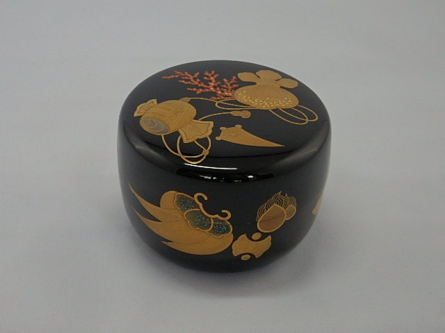 こんにちは 京都観光NAVIの紅葉だよりにも 青葉がほぼなくなり 色づいている情報が多くなりました。 自宅から見る京都の山々も 美しいです。 今回は 蒔絵の美しさが楽しめる 平棗のご紹介でございます。 <駒沢徹 宝尽し 平棗 共箱> 駒沢徹(こまざわ とおる) 加賀蒔絵師 千家書付作家として高い技術による茶道具を制作 お茶席での知名度も高い お茶道具が専門...