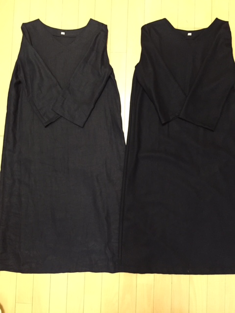 JUGEMテーマ:茶道 「初心者OK」というお茶会にこっそり出たりしていますが、もちろんお茶会着物なんて持っていません。 なので用意したのが「お茶会ワンピ」。 ハンドメイドのサイトでデザインを見つけて気に入り、 「正座しても膝が出ずお辞儀をしても下着が見えないように」 と無茶を言ってセミオーダーで作ってもらいました(でも1万円+αくらいでした)。 向かって右がウール、左がリネン。色は紺で、同じ型紙です。 ゆったり作...