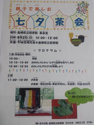 JUGEMテーマ:茶道 JUGEMテーマ:山陰の暮らし。 JUGEMテーマ:縁結び!出雲路 神話の神様が集まる、出雲大社へ行こう こんにちは! 本日から、新しい体制で縁結び通信がスタートします 何が変わったの?って思いますよね。 実は8月から…各店舗のスタッフが更新することになりました〜!! ということでトップバッターは玉造店 これから土曜日を担当させて頂きます どうぞよろしくお願いいたします 今日から夏本番!!8月のスタートですね。 本日は明日島根県立図書館で行われます、 ...