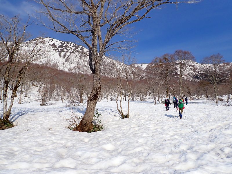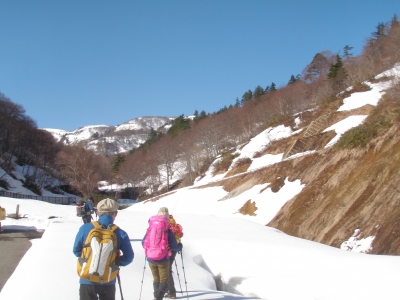 JUGEMテーマ:山スキー 4月11日(日)快晴の日曜日 この天気を逃すわけにはいかない。 ねん挫をした右足にテーピングを行えば何とかなりそうだ。 矢留山岳会の4月の会山行 秋田県湯沢市の山伏岳1315m 3月の気温が高く、雪がどのくらい残っているのか。 まずは行ってみよう。 午前8時泥湯温泉集合のはずが、皆7時30分に集合した。 道路に雪がつながっている。 8時3名が山スキー3名がツボ足で出発 850mの尾根の取りつきまで林道を歩く 登山道ではなく尾根伝いに登る。 しばらくいく...