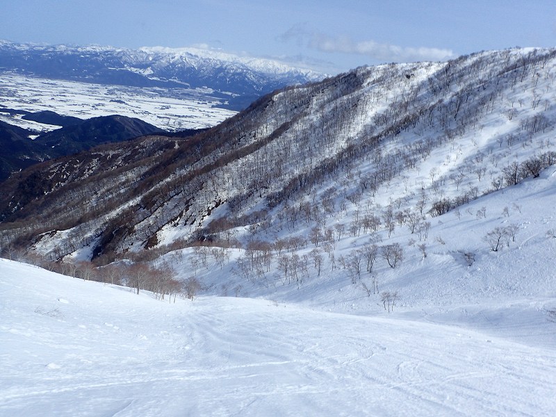 JUGEMテーマ:山スキー 今日の銀杏峰は風が強く、気温が高かった。志目木谷にドロップインすると、風は感じず、ただ暑いだけ。谷を滑り終えると、暑さに緊張も加わり汗まみれ。もうは〜るですネ。 銀杏峰へ 志目木谷