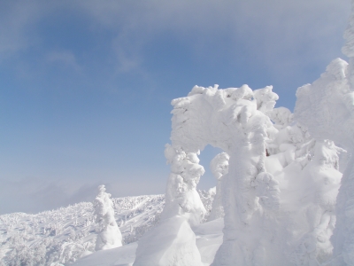 JUGEMテーマ:山スキー 2月11日連休最終日 天気図から午前中はなんとかもつと判断 午前7時秋田市を出発 午前9時前には森吉山阿仁スキー場に到着。 2週続けて森吉山詣でである。 登山届をだしてゴンドラへ乗車。 山頂駅は氷点下10度 ただし風がないので、暖かく感じる 午前9時45分出発 台湾からの団体さんが樹氷見物にきてはしゃいでいる。 樹氷平から登山道にはいる。 この週末の寒波で少し成長したようだ 森吉神社の稜線も見える 午前10時8分 1308m石森 山頂はまもなくガ...