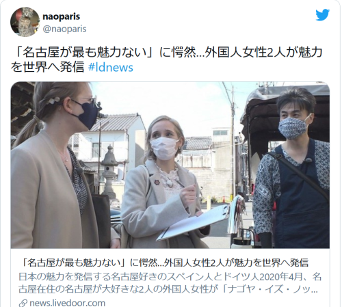 JUGEMテーマ:【MADE IN JAPON】【Inventions Japonaises】【日本の発明】 【JAPON】【NAGOYA】「名古屋はつまらなくない」Nagoya is not boring 名古屋の魅力を世界へ発信 ヨピス・エリサベス Elisabeth Llopis 山口レナ Lena Yamaguchi “最も魅力ない街”に愕然…外国人女性2人が立ち上げたサイト「名古屋はつまらなくない」魅力を世界へ発信 https://news.livedoor.com/article/detail/20369654/ 「名古屋が最も魅力ない」に愕然…外国人女性2人が魅力を世界へ発信...