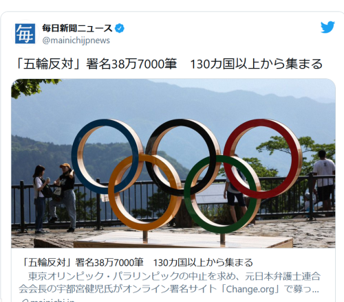 JUGEMテーマ:【MADE IN JAPON】【Inventions Japonaises】【日本の発明】 Jeux Olympiques de Tokyo (23 juillet - 8 août) 【東京五輪】賠償金なしでの開催中止に後押しか 国連事務総長がコロナ禍?戦時見解?(東スポWeb) 【東京五輪】賠償金なしでの開催中止に後押しか 国連事務総長がコロナ禍?戦時見解?(東スポWeb)#Yahooニュースhttps://t.co/XLrWAsh1jK — naoparis (@naoparis) May 25, 2021 【東京オリンピック2020】「五輪反対」130カ国以...