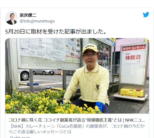 JUGEMテーマ:【MADE IN JAPON】【Inventions Japonaises】【日本の発明】 【キニナル人物】【宗次徳二】「CoCo壱番屋」の創業者 カレー専門店「CoCo壱番屋」(カレーチェーン)の創業者、宗次徳二さん(72) コロナ禍に咲く花 ココイチ創業者が語る“現場徹底主義”とは 5月20日に取材を受けた記事が出ました。https://t.co/B3rUECjpcV — 宗次?二 (@tokujimunetsugu) May 25, 2021 【MAD...