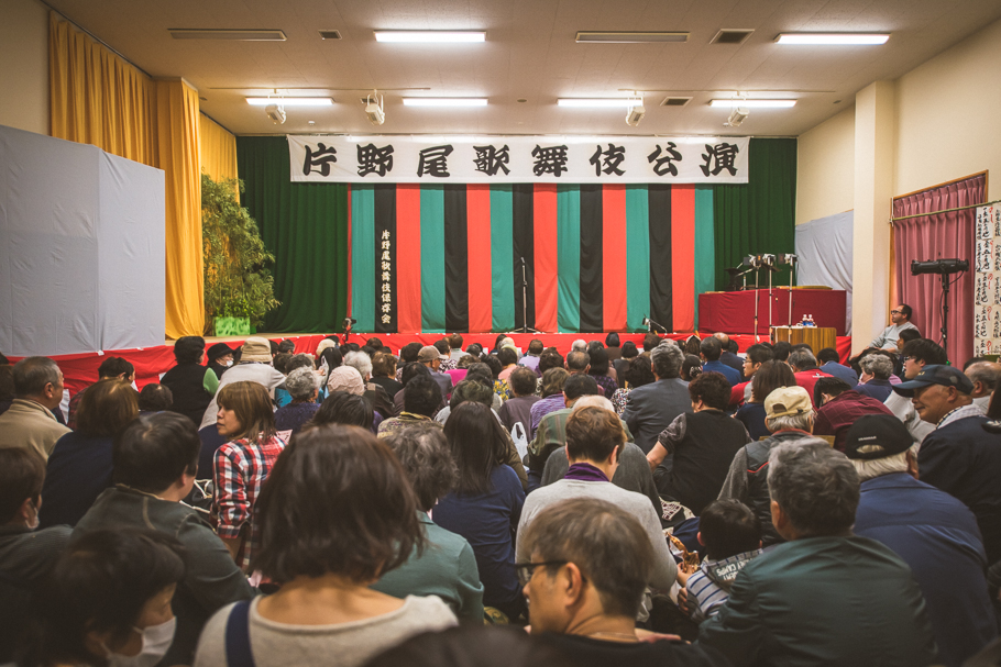 2年に一度の片野尾歌舞伎、はじめて観たのが2014年の公演でした。 2016年4月17日、猫の目のように変わるお天気でした。雷鳴轟く豪雨の中、片野尾へと向かいました。 会場へ到着すると、すでに満員。 前回はかぶりつきで嬉しがって撮影していたのですが・・・場所取り失敗。後方から中望遠で狙ってみます。 歌舞伎の前に、水津の鬼太鼓。 片野尾美女軍団の踊り。 ...