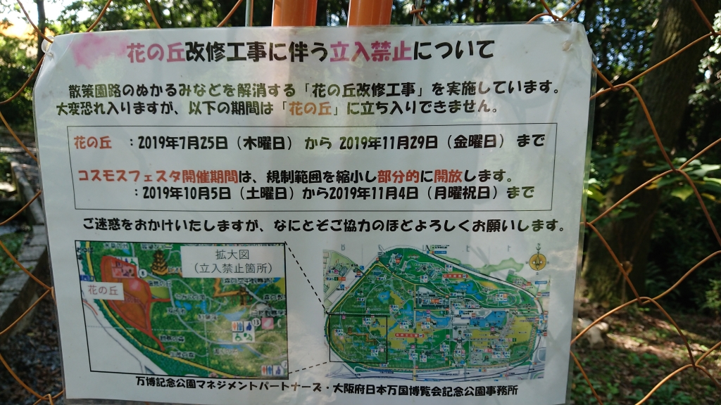 それはロハスフェスタ最終日の(11月5日)火曜日、お友達で一緒に出品もしているEさんが、モノレールの駅から会場までにある「コスモスフェスタ」ののぼりを見て、期間中に1回行ってみたいなぁ〜?って初日から言っていたので、最終日で平日だし行ってみよ〜♪と朝から行く事に。 万博記念公園はとっても広くて、私達のいる公園の東側からは正反対の西側まで30分かけてテクテク歩いて行きました。 「一面のコスモス綺麗かな〜?(^_^)」なんて遠いけど楽しみな道のり。 「花の丘にあるみたい」とEさん。 「あっ、こっちに矢印&...