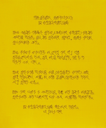 JUGEMテーマ:仏教 パーリ語の原文(デーヴァナガリ文字・デーヴァナーガリ文字)を、梵字(シッダン)に置き換えて書いた「お経」の章句でございます。 日本語の正確な翻訳は岩波文庫「ブッダのことば」(スッタニパータ)のうち「学生バドラーブダの質問」をご参照ください。 日本語での解説書は、いくつか出版されておりますけれど、原文対照で見せてくださる本は、記憶にありません。 外国の本や情報で探しますと、ローマ字・デーヴァナガリ文字の対照本はありますが、専門家でもなければ読むのは至難。 まぁ、最近の大...
