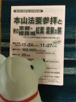前々からお知らせいたしておりました「本山団体参拝」日程の詳細が決まりました。 今回は参拝は「第25代 専如門主 伝灯奉告法要」の記念のお参りになります。 旭川発、期間は平成28年11月24日(木)から三泊四日です。 京都の紅葉が一番美しい時期を選びましたので、旅費は高めになっていますが是非とも時間を作って御参拝下さい。 安心の日本旅行から添乗員さんもついて、もちろん私も同行いたします。(^o^)v お申し込みはお早めに!(^o^) ある掲示板のダイエットφ(.. )メモ &nbs...