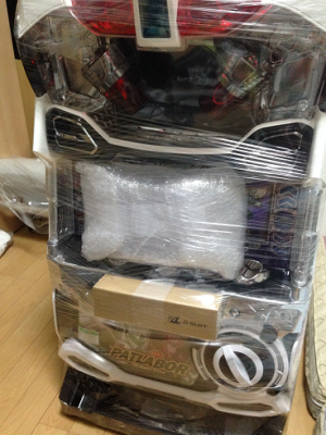 ついに、我が家に、パチスロが導入されました。 機種は、酷評が多かった北電子のパトレイバーですw。 ちょうどキャンペーン期間中で、コインレスプレイ加工および4CHのイヤホンコンバーターを 40%OFFという格安で入手。(普段は10%引き) 個人的には、ガチャガチャンスでAT直撃が可能な 家スロ向きな機種じゃないかと思います。 さっそく、段ボールから開封しました。 今回は、Aスロットさんで購入。 家パチは姉妹店のAパチンコさんで購入しており、いつもながら、綺麗な梱...