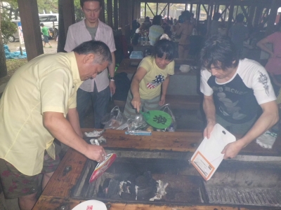 JUGEMテーマ:その他雨の中行って来ました和田の海水浴場のBBQ施設でいつものメンバーとその家族達。炭奉行の会長は毎年頑張ってくれます土砂降りの雨でしたが、屋根が有るので問題無しです。皆グルメなんで肉はA5ランクを5kgほど・・・あっという間に無くなりました子供1号もガツガツ・・・2才の子供2号もA5ランクならパクパク・・・2才でも違いが分かるんでしょうか子供達は雨水で遊びながら雨が上がるのを待ってますで、とうとう雨が上がったんですが、子供1号が泳ぎたいときかず、仕方なく付き合いましたが、寒い寒い・・・雨...