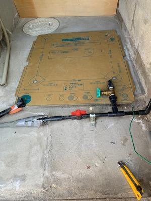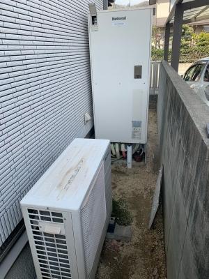 JUGEMテーマ:地域情報・岡山県 K様邸のエコキュート設置工事を行いました。 貯湯タンクは前日に設置 3週間経ったので基礎の強度も発現しているはずです 貸し出し用の石油給湯器 下水ますに排水するので